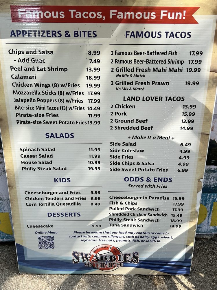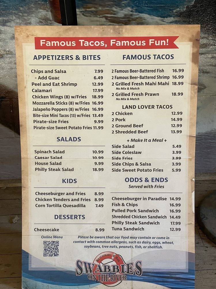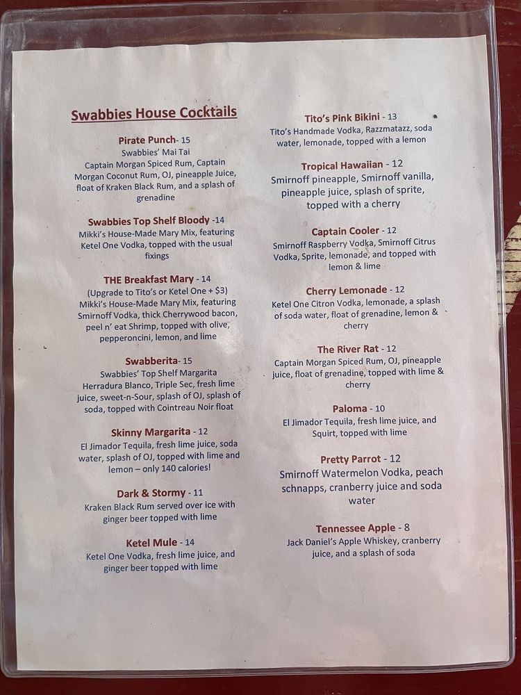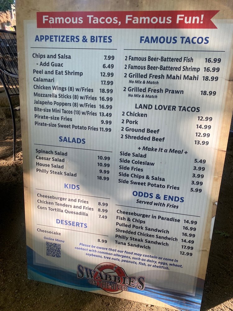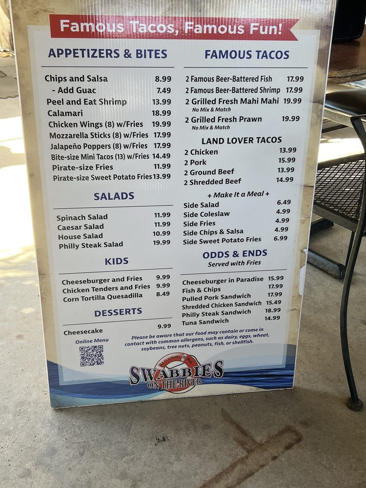 Swabbies, a New American bar located in Sacramento, CA, offers a vibrant experience with vegan and vegetarian options. With a lively atmosphere and live music, it's perfect for groups and families. The menu features crowd-pleasers like fish tacos and wings, complemented by great service. The outdoor seating, including beach vibes and themed decorations, adds to its charm. Customers rave about the shredded beef tacos, flavorful green sauce, and pub-style fare. The casual setting, friendly staff, and scenic views of the Sacramento River make Swabbies a must-visit spot. Whether you're looking for a laid-back hangout, delicious food, or a fun night out, Swabbies has something for everyone. Experience the best of Swabbies with their diverse menu options and exciting events.